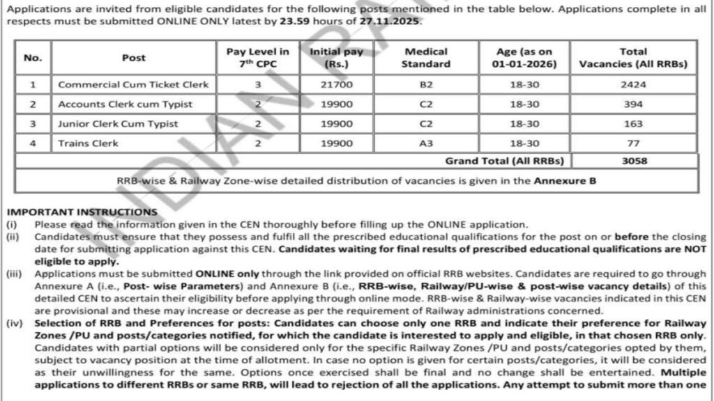 RRB NTPC UG 2026 में रजिस्ट्रेशन की लास्ट डेट आगे बढ़ी, 3058 पदों के लिए जल्द करें आवेदन