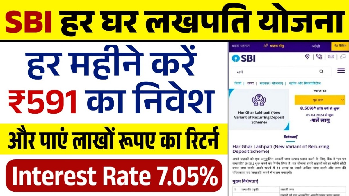 अगर आप भी इसी प्रकार की योजना की तलाश में थे तो आपके लिए इस आर्टिकल के माध्यम से बिना देर किए संबंध सभी प्रकार के विवरण को जान लेना चाहिए और निवेश संबंधी जानकारी प्राप्त कर लेनी चाहिए ताकि आप योजना से जुड़कर लाखों रुपए तक की बचत कर सके।SBI Har Ghar Lakhpati Scheme 2025 Overviewयोजना का नाम एसबीआई हर घर लखपति योजनाप्रकार रिकरिंग डिपॉजिट (RD)बैंक का नाम भारतीय स्टेट बैंक (SBI)न्यूनतम निवेश राशि 591 रुपएब्याज दर सामान्य नागरिकों के लिए 6.75%, वरिष्ठ नागरिकों के लिए 7.05%निवेश अवधि न्यूनतम 3 वर्ष तथा अधिकतम 10 वर्ष तक की हैश्रेणी सरकारी योजनाआधिकारिक वेबसाइट https://sbi.co.in/एसबीआई हर घर लखपति योजना के लिए पात्रता (Eligibility for SBI Har Ghar Lakhpati Yojana)